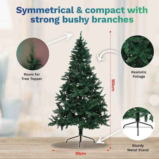 Christmas By Sas 1.8m Pine Christmas Tree 550 Tips Full Figured Easy Assembly