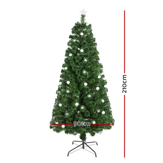 Jingle Jollys Christmas Tree 2.1M 7FT LED Xmas Fibre Optic Multi Warm White