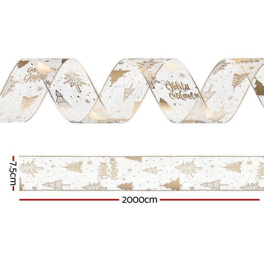 Jingle Jollys 20M Christmas Ribbon Roll Bow Printed Xmas Tree Decor Gift Gold