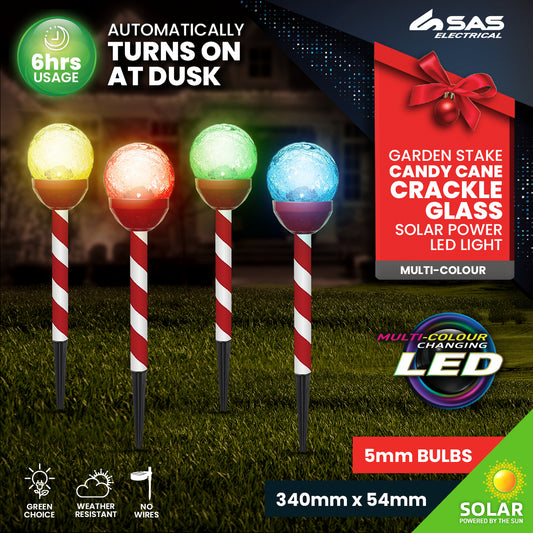 Christmas By Sas 24PCE Solar Candy Cane Stakes With Crackle Balls LED 35cm