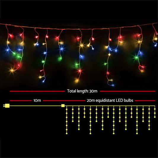 20M Christmas Lights Icicle Light 800 LED Multi-coloured Jingle Jollys
