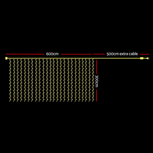 3X6M Christmas Lights Curtain Light Warm White 600 LED Jingle Jollys