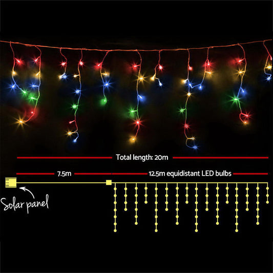 12.5M Christmas Lights Solar Icicle String Light Multi Colour Jingle Jollys