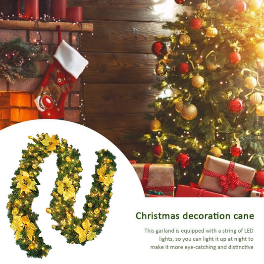9FT Yellow Christmas Garland with LED Light Xmas Artificial Wreath Stairs Rattan Decor